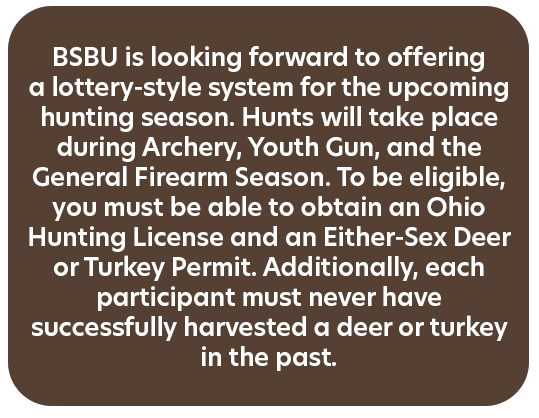 Yes, this is not a “do-it-yourself” hunt. All participants will supply their own gear and be expected to have the necessary hunting license from the State of Ohio. BSBU will supply the weapon, hunting blind, and hunting area. You will also be accompanied by a BSBU Mentor and your sponsor during your hunt.